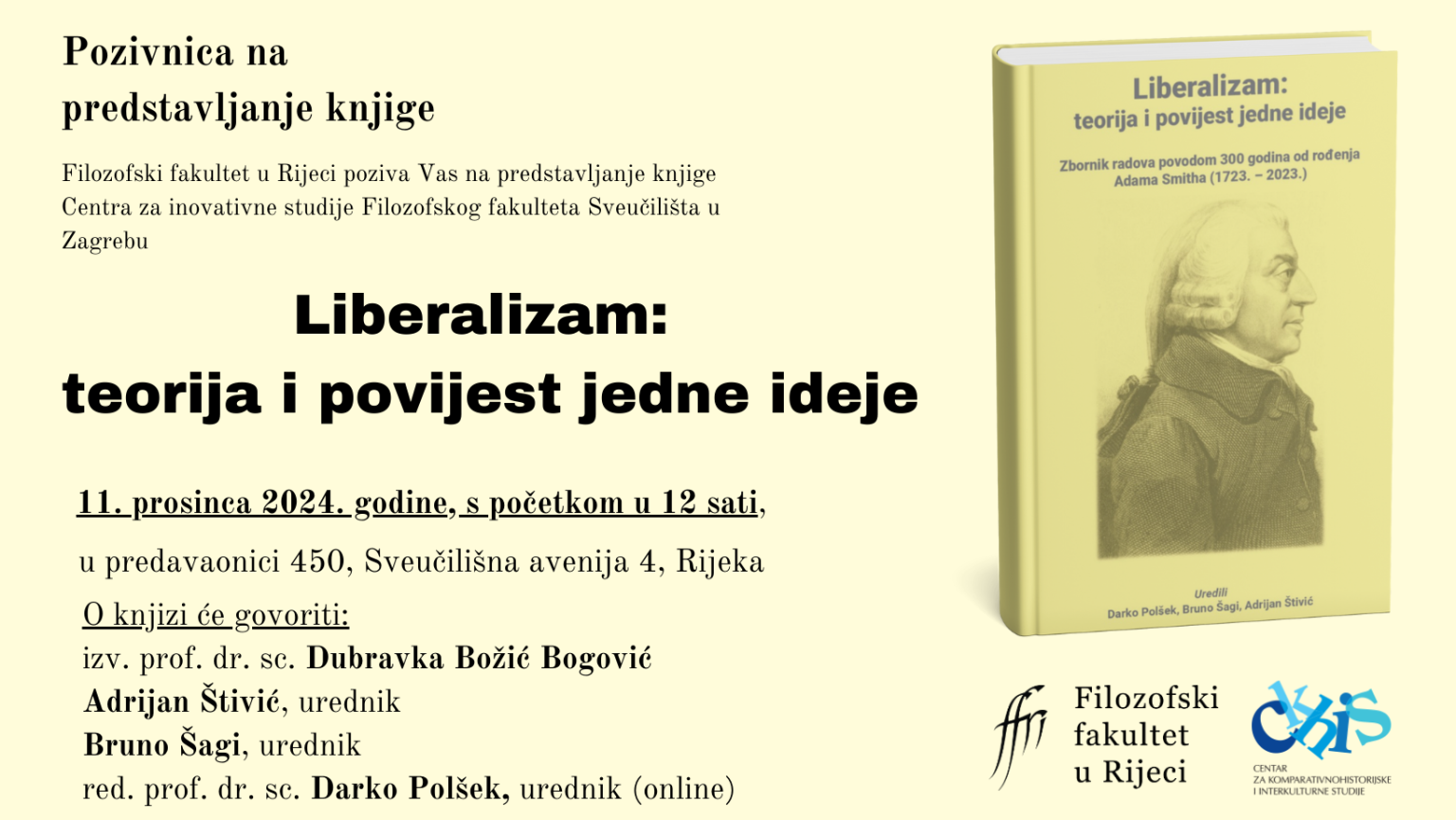 Odsjek za povijest FFRI poziva vas u srijedu 11. prosinca u 12 sati (predavaonica F-450) na predstavljanje knjige Liberalizam: teorija i povijest jedne ideje (ur. Darko Polšek, Bruno Šagi, Adrijan Štivić: FF Press, 2024). Radi se o multidisciplinarnom zborniku koji istražuje odabrane aspekte intelektualne povijesti liberalizma. Tekstovi u knjizi nastali su kao rezultat znanstvenog kolokvija održanog u … Nastavi čitati Predstavljanje knjige ‘Liberalizam: teorija i povijest jedne ideje’