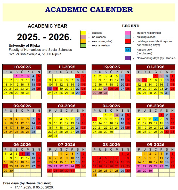 - FHSS Academic calendar (undergraduate and graduate studies) 2025/2026