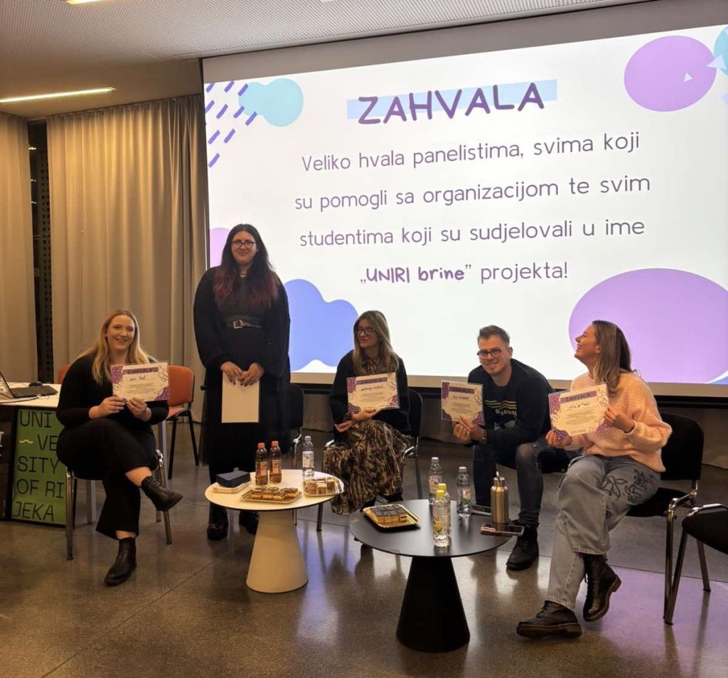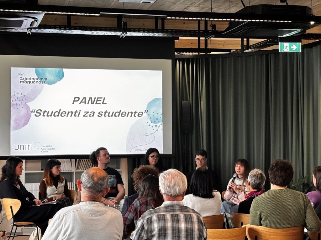 Sudjelovali smo na događanju „UNIRI Izjednačava mogućnosti“, koje je održano u organizaciji Sveučilišnog savjetovališnog centra. U panelu „Studenti za studente“ svoja iskustva u pružanju vršnjačke podrške podijelile su i naše studentice mentorice te edukatorice u projektu „UNIRI brine“ – Miroslava Mrkalj i Antonia Zlatarić.